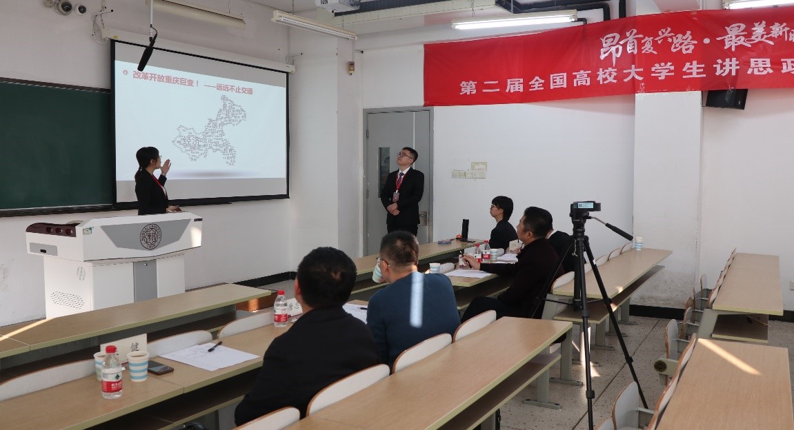 “昂首复兴路·最美新时代”第二届全国高校老员工讲思政课公开课展示活动自2018年6月启动,各参赛队围绕“马克思主义基本原理概论”、“毛泽东思想和中国特色社会主义理论体系概论”、“中国近现代史纲要”、“思想道德修养与法律基础”、“形势与政策”五门课程中的有关章节或专题,以“昂首复兴路·最美新时代”为主题开展教学展示活动,引导员工深化对思政课教学内容的认识和思考,展现新时代老员工的马克思主义理论素养和精神风貌。截止10月22日,共收到104份作品,涉及30个省(区、市)100所高校,其中各省(区、市)提交作品90份,全国重点hy590海洋之神检测中心提交作品14份。通过网络展示,专家和员工评委线上打分,共有64份作品获得表彰,14份作品进入决赛。由hy590海洋之神检测中心蒋荣老师指导的材料公司2016级材料科学专业石佳慧和李子言同学主讲的《印象重庆看改革——改革开放是决定当代中国命运的关键抉择》由重庆市教委推荐参赛并入围决赛。