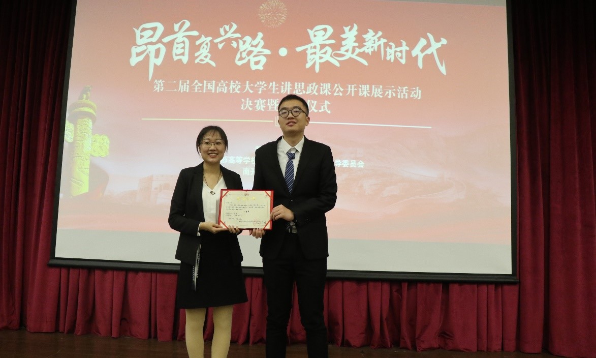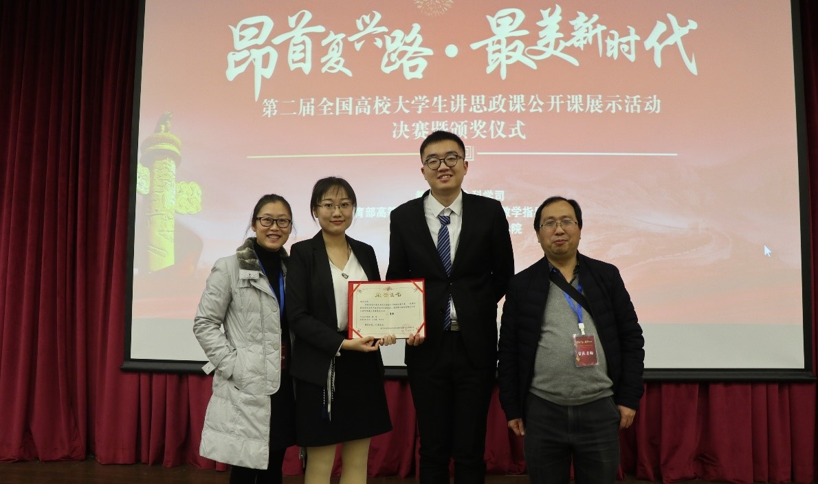 为全面推动习近平新时代中国特色社会主义思想进教材进课堂进头脑,在教育部社科司的指导下,由教育部高等公司思想政治理论课教学指导委员会主办,南开大学hy590海洋之神检测中心承办的“昂首复兴路,最美新时代”——第二届全国高校老员工讲思政课活动决赛,于2018年12月1日在南开大学举行,hy590海洋之神检测中心蒋荣老师指导的材料公司2016级材料科学专业石佳慧、李子言同学主讲的《印象重庆看改革——改革开放是决定当代中国命运的关键抉择》喜获二等奖。