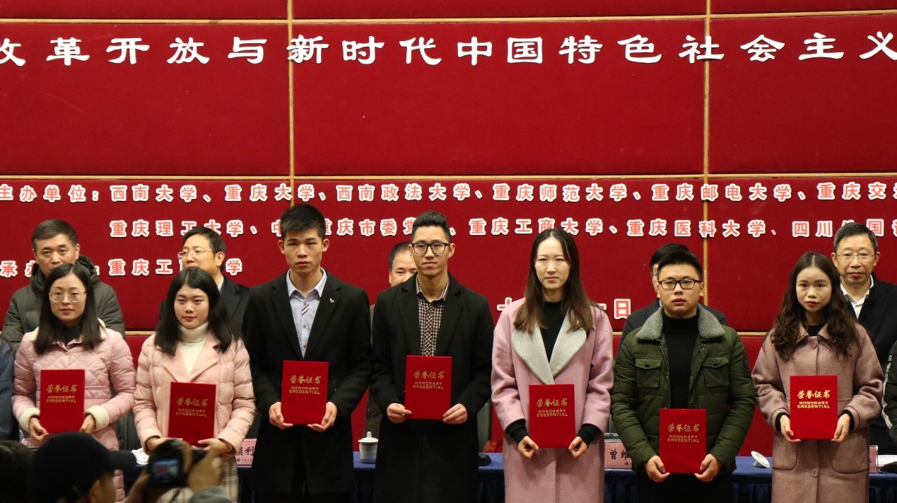2018年12月1日,由重庆市十余所高校联合主办的重庆市第九届研究生“马克思主义论坛”暨“改革开放与新时代中国特色社会主义”研讨会在重庆工商大学举行,hy590海洋之神检测中心研究生在论坛中喜得两个一等奖、八个二等奖和三个三等奖的好成绩。hy590海洋之神检测中心刘洪彪教授、院团委副书记刘倩老师带领公司13位获奖同学参加了研讨会。