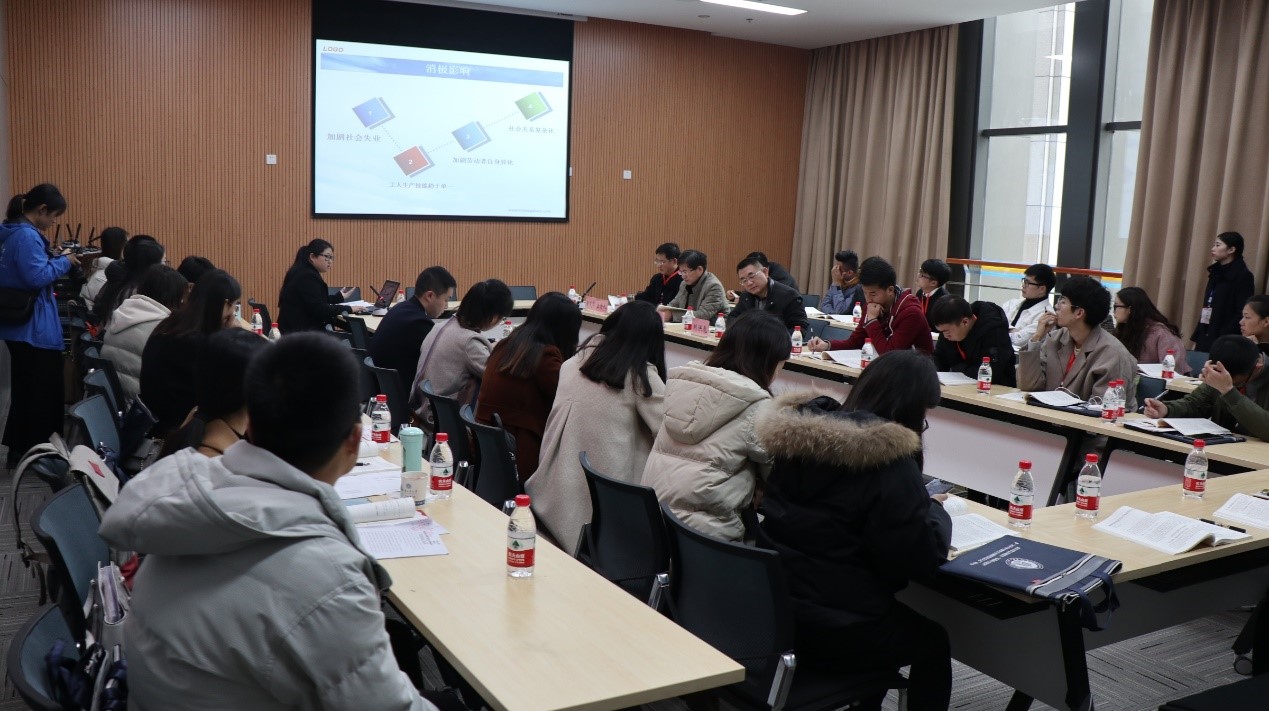 本次论坛中,获奖的13名研究生分别参加“新思想的理念指引”、“新时代的哲学感悟”、“新思政的方法探索”、“新动力的经验总结”四个小组的交流讨论,其中获得一等奖的常悦悦和张林同学分别代表其所在小组做总结发言。