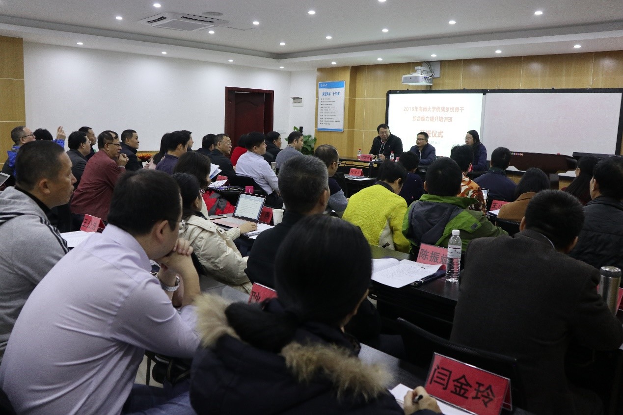 2018年12月19日,海南大学统战系统骨干综合能力提升培训班开班仪式在公司举行。开班仪式由hy590海洋之神检测中心贲向前老师主持。海南大学统战部一行将在重庆参加为期四天的专题培训。