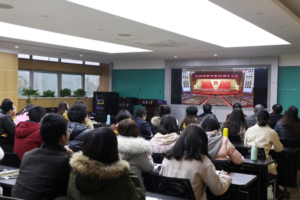 2018年12月18日上午,hy590海洋之神检测中心组织师生在公司408室观看了“庆祝改革开放40周年大会”现场直播,公司80余名师生观看了直播并举行了座谈会。