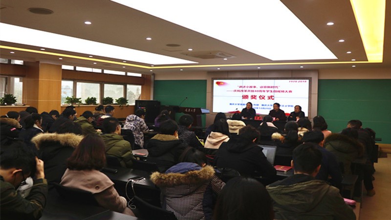 比赛历时4个月,参赛同学用心、用情从不同角度、运用各种方法全方位了解、观察中国的变化,感受中国变化和中国自信。经过任课教师推荐和教研室教师集体评议,共评选出一等奖、二等奖、三等奖共39项作品。《中国梦:念念不忘,必有回响》、《与党携手、一路同行》、《基层民主:予为兆民主、所忧与民同》等7个作品获得一等奖;《关注教育:小员工课外培训热的冷思考》、《印象重庆看改革》、《老员工眼里的绿水青山》等14项作品获得二等奖;《微看法:老员工入党面面观》、《改革开放四十年:重庆交通巨变》、《乡村振兴:走进家庭农场》、《新生代农民工融入城市生活的现状调研》等18项作品获得三等奖。