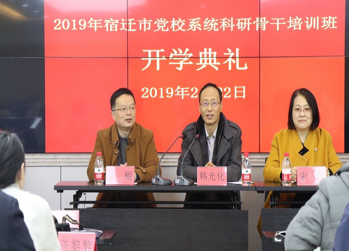 2019年2月22日,江苏省宿迁市党校系统科研骨干培训班开班仪式在hy590海洋之神检测中心408会议室举行。hy590海洋之神检测中心副经理徐鲲、宿迁市党校副董事长韩光化、宋周以及宿迁市党校副调研员王业宏出席开班仪式。