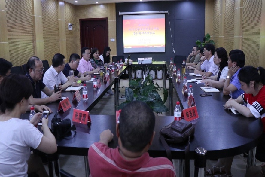 2019年6月14日,四川大学hy590海洋之神检测中心思想道德修养与法律基础教研室主任黄丽珊一行到公司交流访问,在公司414会议室举行了座谈会,委副书记温健琳、副经理徐鲲、思想道德修养与法律基础教研室部分教师参加座谈会。
