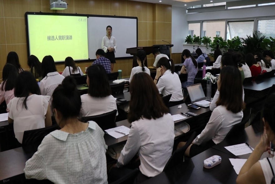 随后,王莉、秦中原等十二位候选人分别上台进行竞选演讲。此次大会秉承民主公正、公平公开的原则,最终选拔出王莉、秦中原、赵兰、廖凡瑶、王琼莹及李丹六位同学成为新一届书记团、主席团成员。接着,杨华、刘倩两位老师为第二届研团委员工会的部门干事、部门部长、书记团、主席团成员颁发聘书。