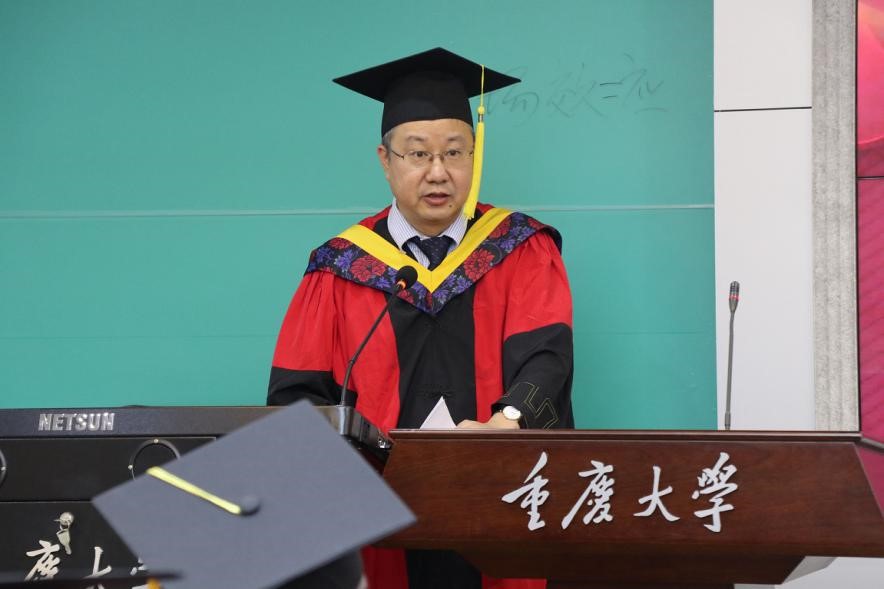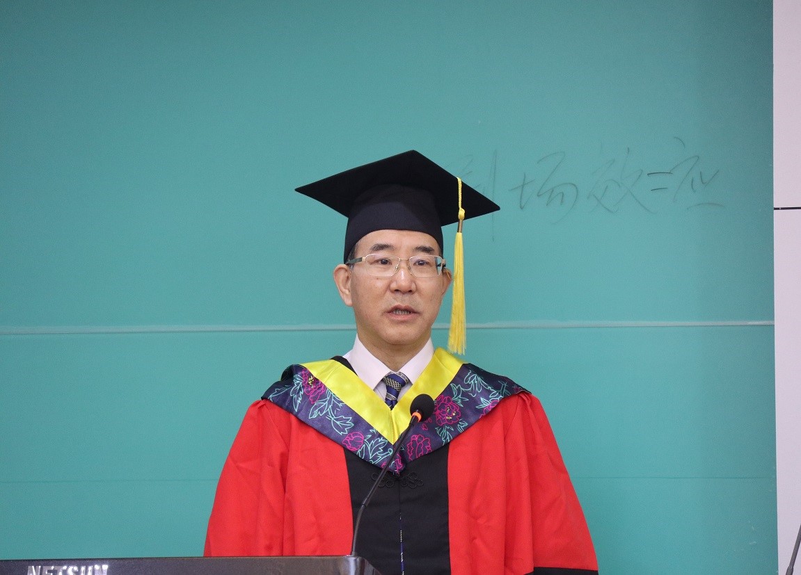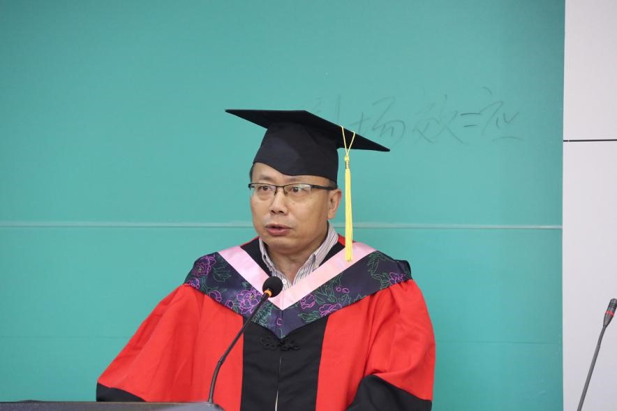 张礼建教授代表硕士生导师向毕业生致以衷心的祝贺。他希望同学们要处理好职业与事业的关系,时刻怀揣理想,有担当、有家国情怀,有为国家、时代奉献情怀和抱负。其次,要处理好积累知识和运用知识的关系,保持终身学习的习惯,用知识、智慧去回报、丰富时代。最后,要处理好心胸和前途的关系,要以宽广的胸怀和丰满的理想是筑牢成长成才的阶梯。