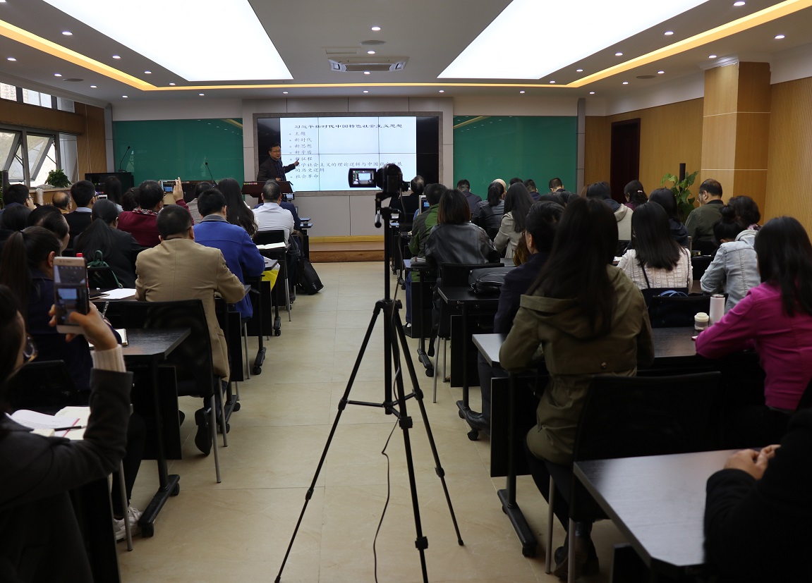 郝教授从新时代、新思想、新矛盾、新征程等基本概念切入,对党的十九大报告进行了专业解读,并以习近平新时代中国特色社会主义思想为出发点,重点阐释了21世纪中国马克思主义的发展创新、思政课教学的理论和方法,以及高校思想政治理论课面临的几个挑战。