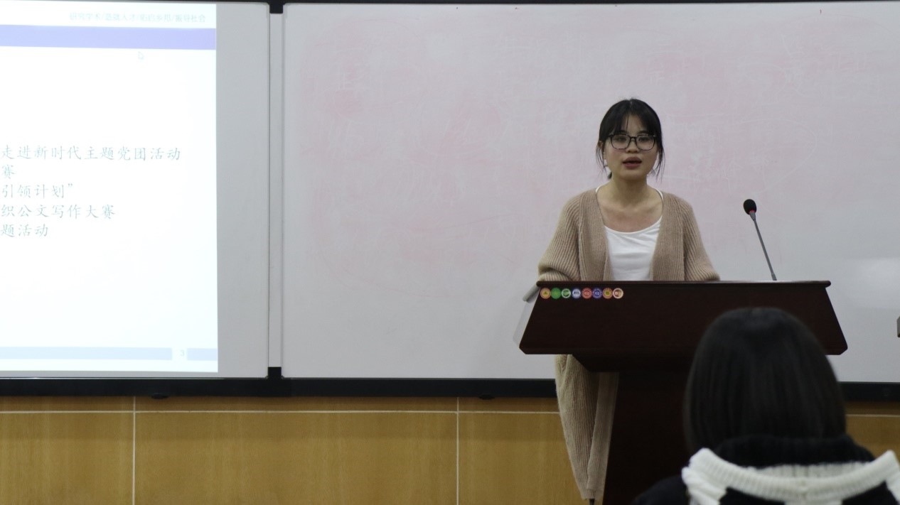 接下来,何佳佳对近期研团委的工作进行了安排。她倡导全体干事要勇于创新、保持积极性、提高执行力,为团委员工会贡献自己的力量。