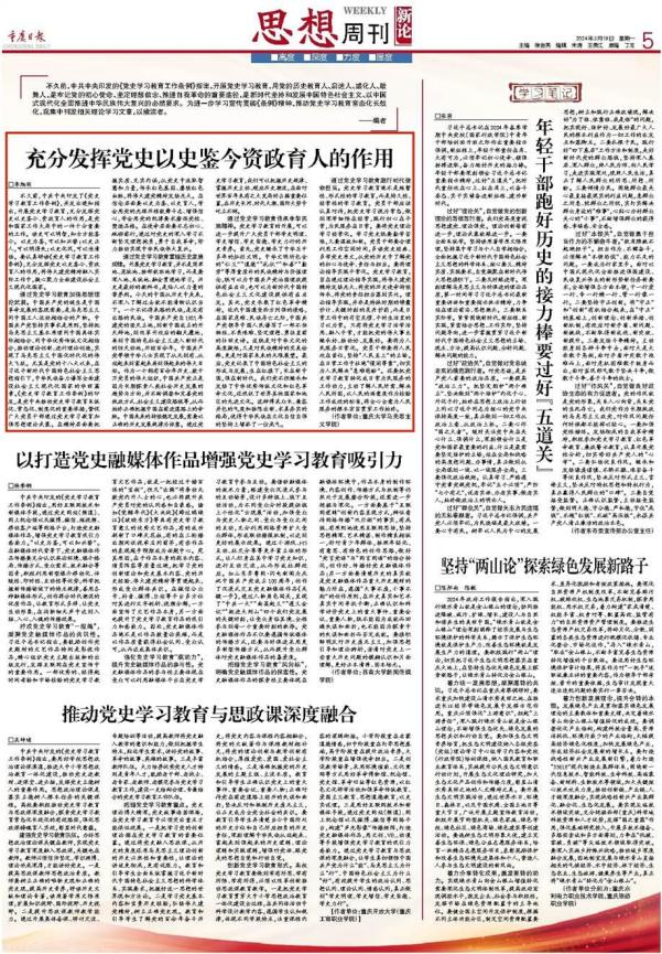 2024年3月18日,公司李旭阁博士在《重庆日报》思想周刊栏目发表《充分发挥党史以史鉴今资政育人的作用》一文。