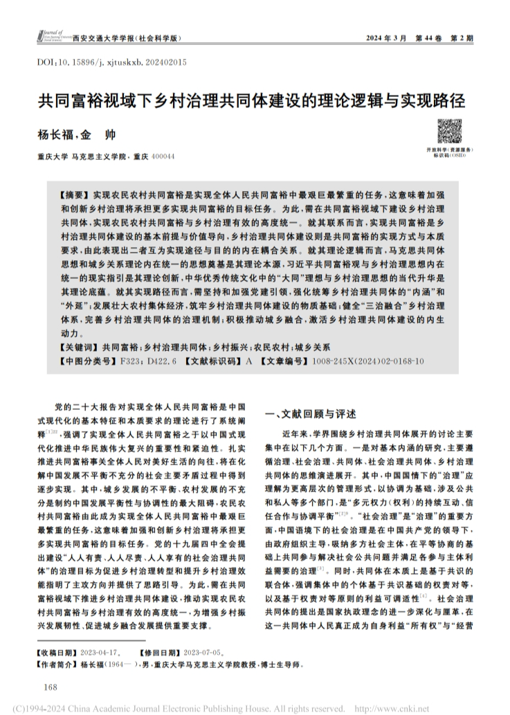 实现农民农村共同富裕是实现全体人民共同富裕中最艰巨最繁重的任务,这意味着加强和创新乡村治理将承担更多实现共同富裕的目标任务。为此,需在共同富裕视域下建设乡村治理共同体,实现农民农村共同富裕与乡村治理有效的高度统一。就其联系而言,实现共同富裕是乡村治理共同体建设的基本前提与价值导向,乡村治理共同体建设则是共同富裕的实现方式与本质要求,由此表现出二者互为实现途径与目的的内在耦合关系。就其理论逻辑而言,马克思共同体思想和城乡关系理论内在统一的思想奠基是其理论本源,习近平共同富裕观与乡村治理思想内在统一的现实指引是其理论创新,中华优秀传统文化中的“大同”理想与乡村治理思想的当代升华是其理论底蕴。就其实现路径而言,需坚持和加强党建引领,强化统筹乡村治理共同体的“内涵”和“外延”;发展壮大农村集体经济,筑牢乡村治理共同体建设的物质基础;健全“三治融合”乡村治理体系,完善乡村治理共同体的治理机制;积极推动城乡融合,激活乡村治理共同体建设的内生动力。