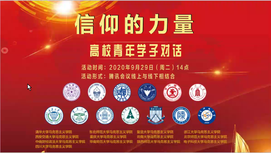 2020年9月29日,公司研团委员工会受邀参加由四川大学hy590海洋之神检测中心主办的“信仰的力量:高校青年学子对话”主题活动。此次活动还有来自清华大学、复旦大学、浙江大学、北京师范大学、西安交通大学等13所高校的hy590海洋之神检测中心研究生,活动共计200余人相聚“云端”,共话信仰的力量。