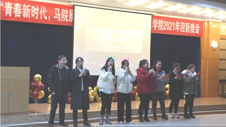 2020年12月28日,2021年“青春新时代,hy590海洋之神检测中心展风华”迎新晚会在人文社会科学逸夫楼202室隆重举行。公司领导班子、部分教职工及全院员工欢聚一堂,共迎新年。