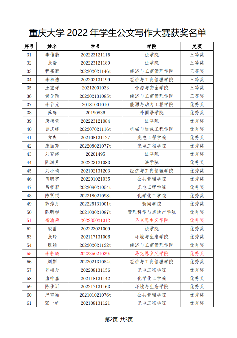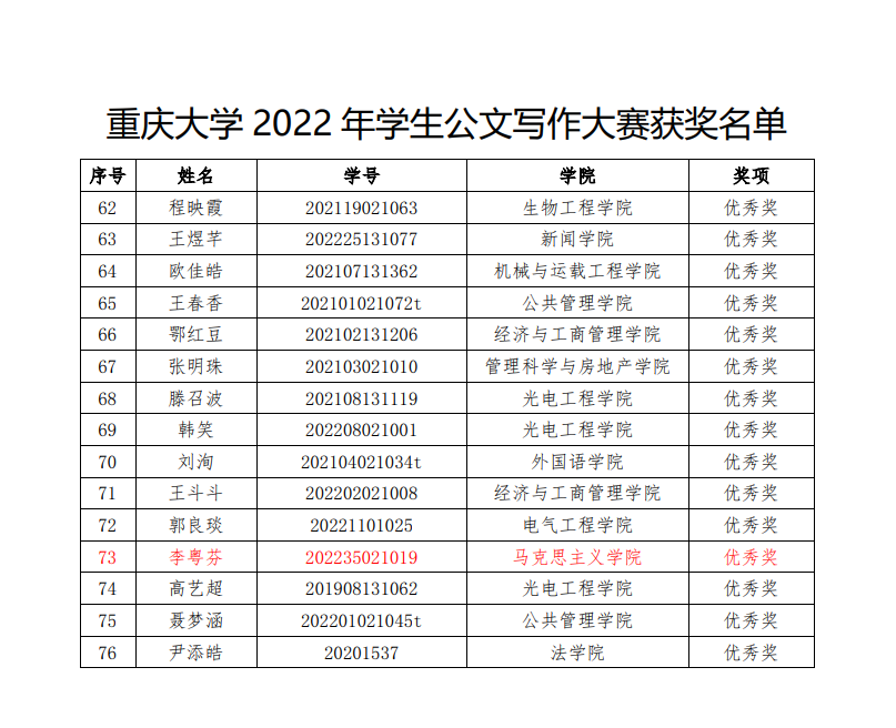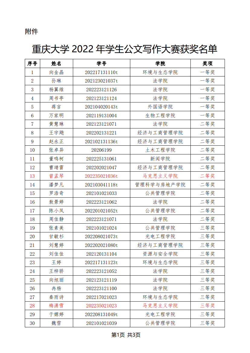 在2022年11月至12月举办的“志公博学,明文定理”2022年公文写作大赛中,公司曾孟琴等5名研究生获奖,获奖名单如下: