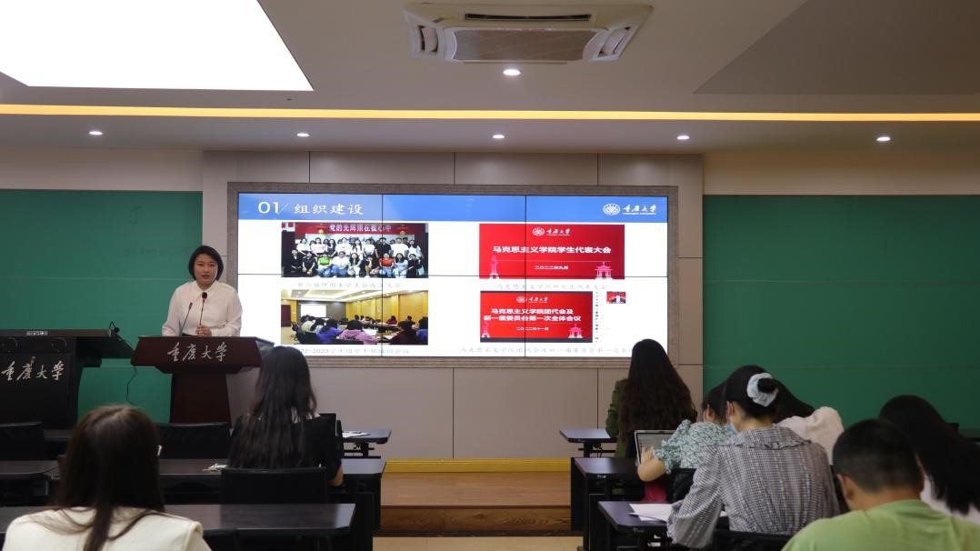首先,何静代表书记团作工作总结,她从承办校级活动、举办院级活动以及个人工作完成情况三个部分进行汇报,同时也指出了近一年工作中的不足,希望大家在接下来的工作中继续保持热情,取得更好的成绩。董瑞祺代表主席团对员工会工作做了回顾,她重点就“启邦”研究生宣讲团和红岩宣讲团工作的开展以及取得的成果进行了汇报,并表示尽管上学期情况特殊、困难重重,但研团委员工会大家庭仍然砥砺前行,取得佳绩,这些都离不开同学们的团结与付出。