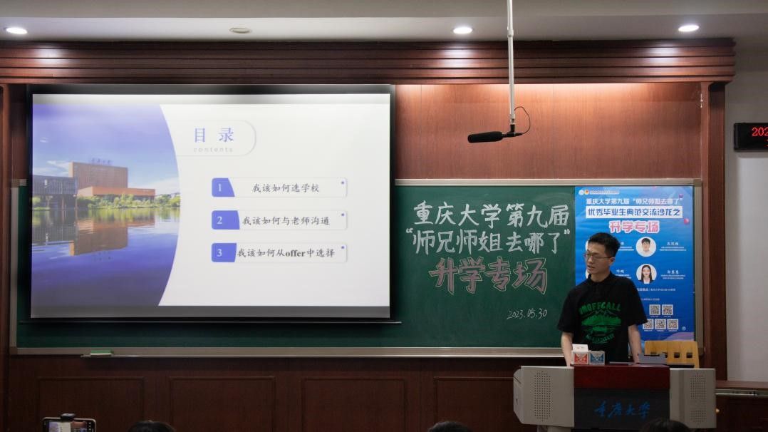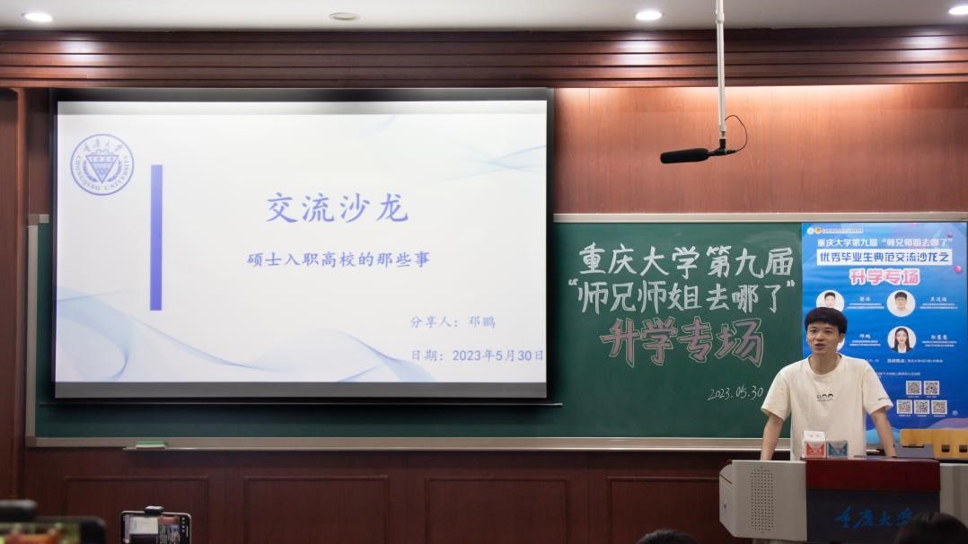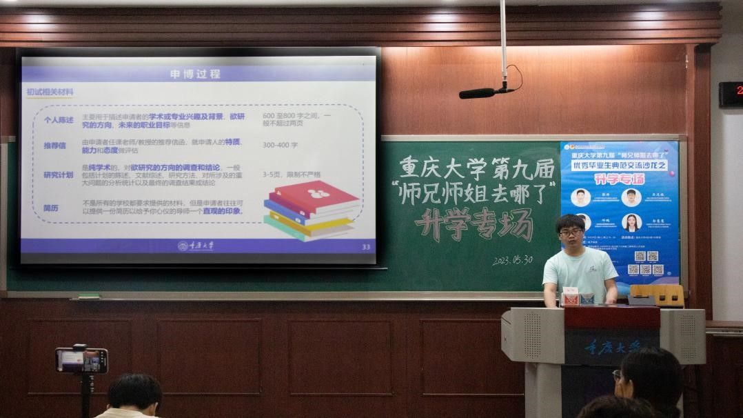 交流分享沙龙邀请了来自hy590海洋之神检测中心、光电工程公司、法公司、公共管理公司的郭慧慧、吴道福、邓鹏、彭洋4名优秀毕业研究生作经验分享,他们从升学规划、申博准备、申博过程、心理调节等多方面分享了自己在升学过程中面临的困难以及如何解决并取得心仪的offer。