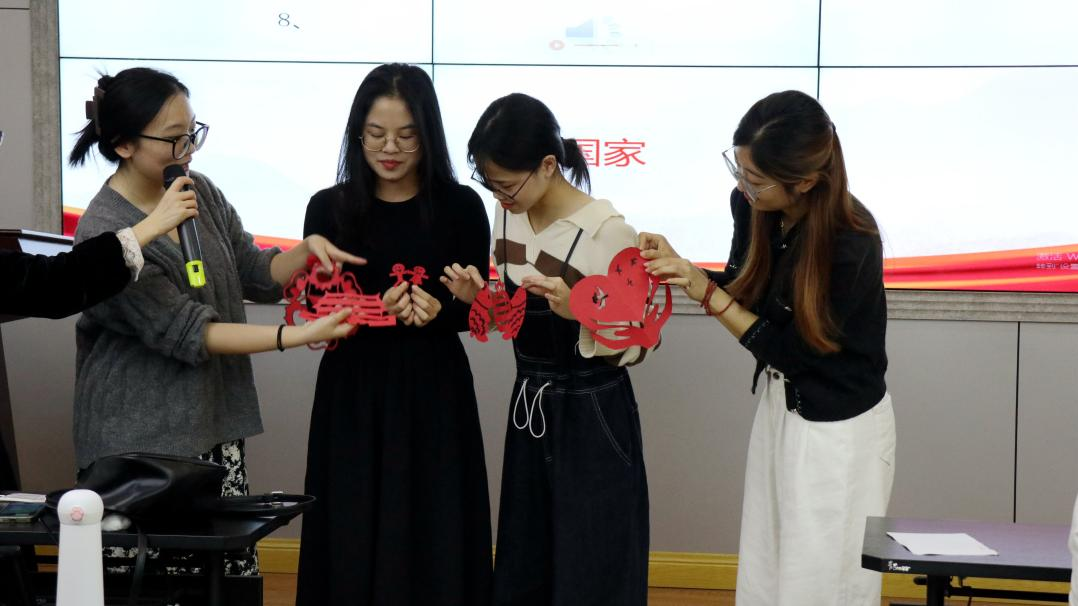接下来,以“献礼二十大”为主题,各小组团队协作进行剪纸折纸,并现场展示团队成果,进行评比。