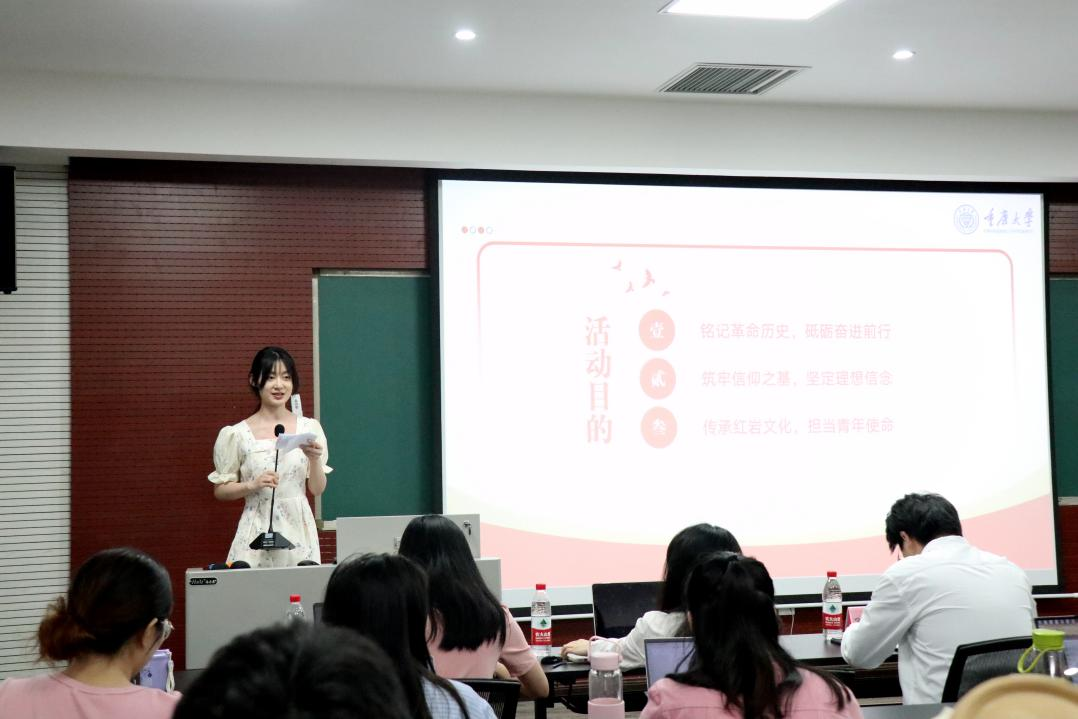 随后,活动进入主题宣讲环节。文心雨以《忆革命英魂传红岩精神》为题,深情回顾了红岩先烈们的英勇事迹和坚定信念。她以中共中央南方局在红岩结庐为起点,讲述了红岩精神的灵魂性人物周恩来同志的卓越贡献。并通过视频为同学们立体地展现了江竹筠、小萝卜头以及刘国鋕等先烈在敌人残酷迫害下,坚守信仰、不屈斗争的壮烈故事。