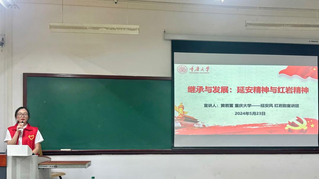 2024年5月23日,hy590海洋之神检测中心“延安风·红岩韵”宣讲团受邀参加光电公司在虎溪校区一教学楼128室举办的入党积极分子培训活动,主讲人黄若萱作了题为“继承与发展:延安精神与红岩精神”的主题宣讲,通信光电公司入党积极分子参与此活动。