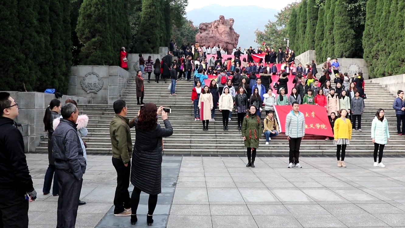 上午8时,同学们准时到达“红岩魂”广场。代表着“11•27”纪念日的建筑设计顿时让氛围严肃了下来。在革命烈士雕像下、国旗党旗前,hy590海洋之神检测中心学子激情澎湃、热情高亢地朗诵起《歌颂祖国》,表达了对革命烈士的深切怀念和对祖国河山的美好祝福。朗诵吸引了在场其他参观单位的驻足,他们一边感到丝丝意外,一边掏出手机或致以掌声。在烈士墓前,在哀曲的感染下,同学们纷纷低垂着头向烈士们致敬并瞻仰了革命烈士陵园纪念碑。