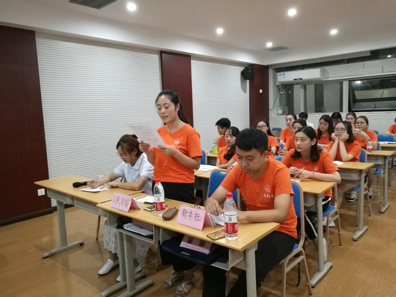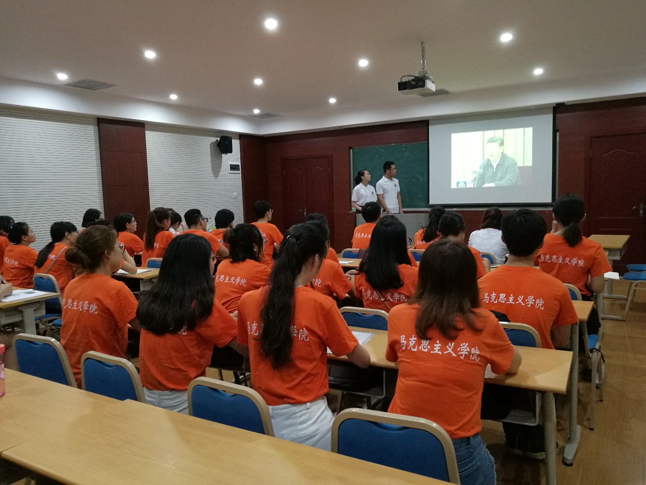此次党团活动以模拟“新闻联播”的形式开展,创意新颖,效果显著,在场同学纷纷踊跃参与。本次活动还得到校研团委员工会的大力支持,校研团委员工会两位主要成员到场与同学们一起参与活动。与会同学首先观看了新闻联播关于习近平总书记“7•26”重要讲话系列报道视频,通过视频学习,同学们进一步领悟了习总书记讲话精神。