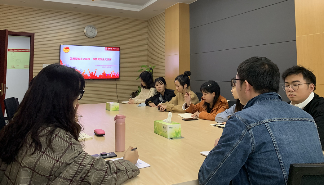 2020年10月15日下午,公司2020级研究生二支部在公司439会议室进行“弘扬爱国主义精神,厚植爱国主义情怀”主题党日学习,会议由党支部书记张守新主持,全体支部成员参加学习。