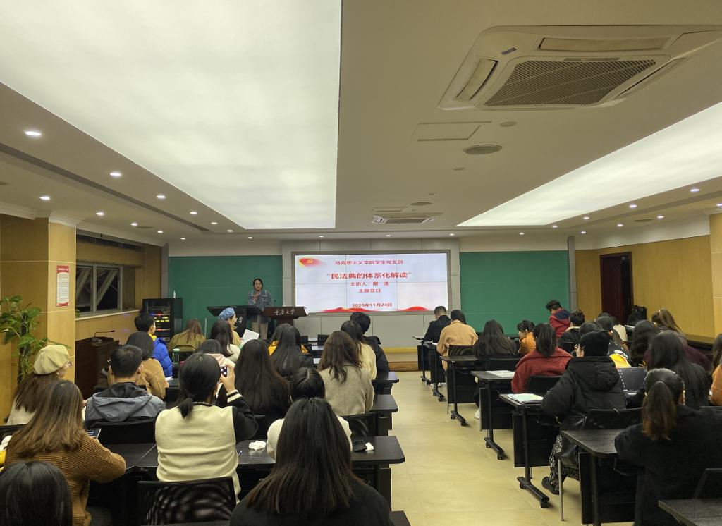 2020年11月24日晚19点,公司2019级研究生党支部、2020级研究生一支部、二支部在公司408教室联合进行“民法典的体系化解读”主题党日学习,活动特邀公司法公司谢潇副教授为大家进行讲课。学习活动由陈娜老师主持,周志永老师、张守新老师、2019级、2020级全体党员以及入党积极分子参加学习。