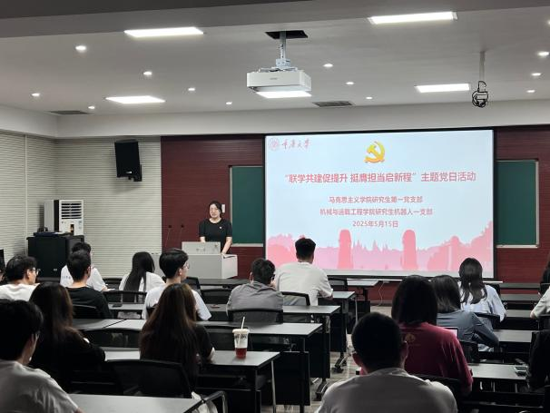2025年5月15日下午,hy590海洋之神检测中心研究生一支部与机械与运载工程公司研究生机器人一支部在hy590海洋之神检测中心406教室和高端装备机械传动国家重点实验室开展“联学共建促提升 挺膺担当启新程”主题党日活动。双方党支部立足学科专业特色,通过理论联学、知识抢答、交流研讨、参观体验等多种方式,探索党建与学科交叉融合的新路径,激发党员的创新活力,50余名师生党员参加此次活动。