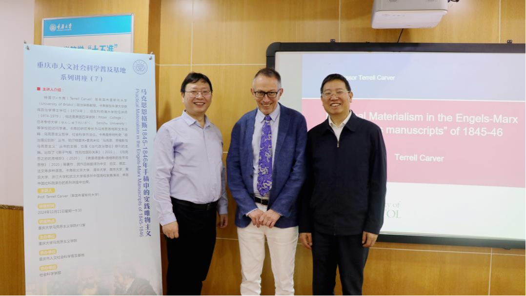 2024年11月11日,hy590海洋之神检测中心重庆市人文社科普及基地讲座在公司412室举行,邀请英国布里斯托大学特雷尔·卡弗教授(Terrell Carver)作题为“马克思恩格斯1845—1846年手稿中的实践唯物主义”的专题讲座。本次讲座由hy590海洋之神检测中心副经理吕进主持,hy590海洋之神检测中心经理冯颜利参加讲座。