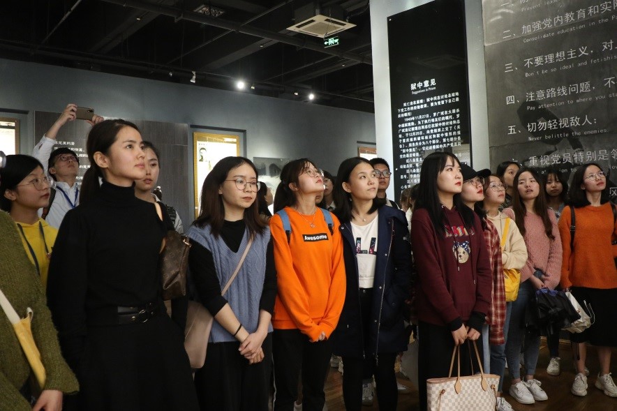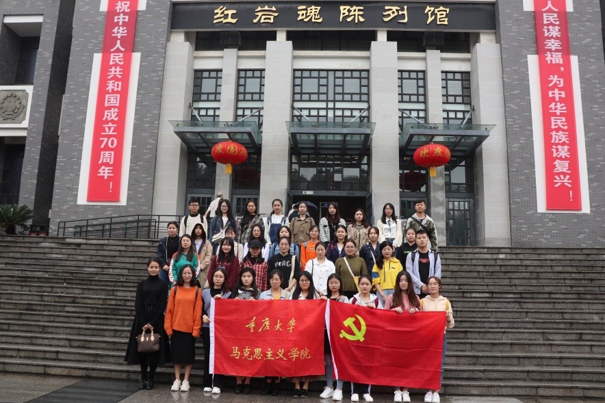随后,大家一起走进红岩魂陈列馆参观学习。在陈列馆内,2019级研究生张盼和左栗涵主动承担起了讲解江姐、曾紫霞等同志的英勇事迹的工作。来自hy590海洋之神检测中心医公司的“学姐”曾紫霞同志的事迹让每位同学都侧耳倾听,同学们表示真正以“学姐”为榜样。最后,在小雨纷纷的红岩魂广场,同学们深情朗诵并歌唱《我和我的祖国》。