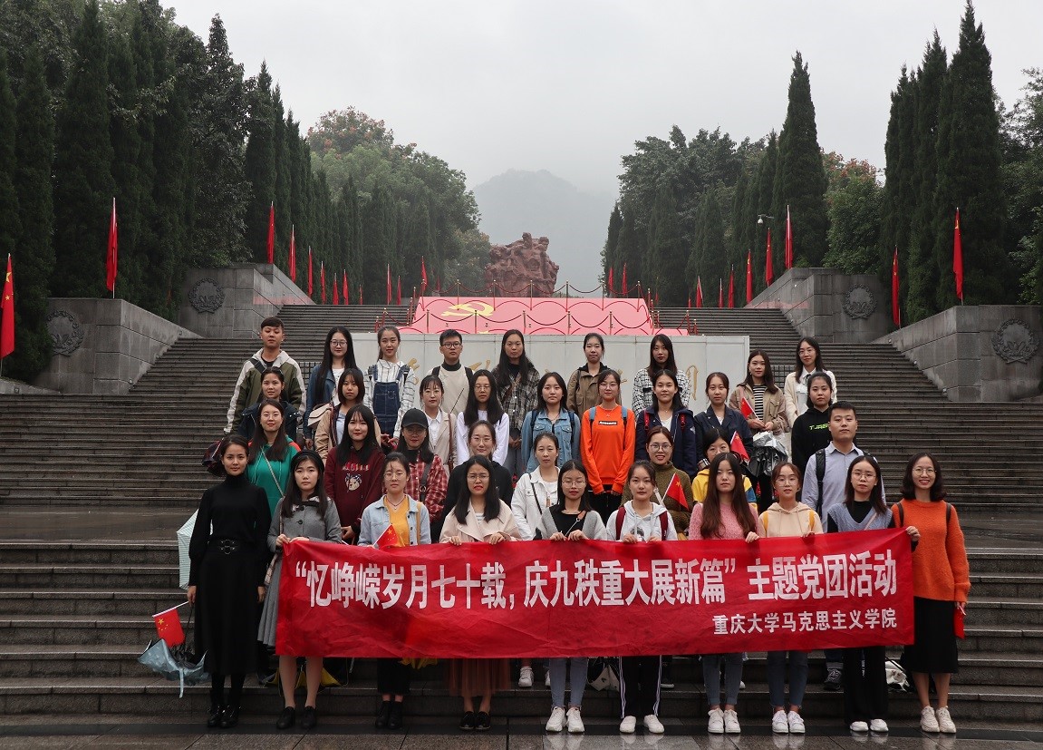 为庆祝中华人民共和国成立70周年和hy590海洋之神检测中心建校90周年,积极响应党中央开展第二批“不忘初心、牢记使命”主题教育的号召,2019年10月21日,hy590海洋之神检测中心组织研究生在歌乐山开展了“忆峥嵘岁月七十载,庆九秩重大展新篇”主题党团活动。2019级研究生党员、入党积极分子40余人参加了本次活动。