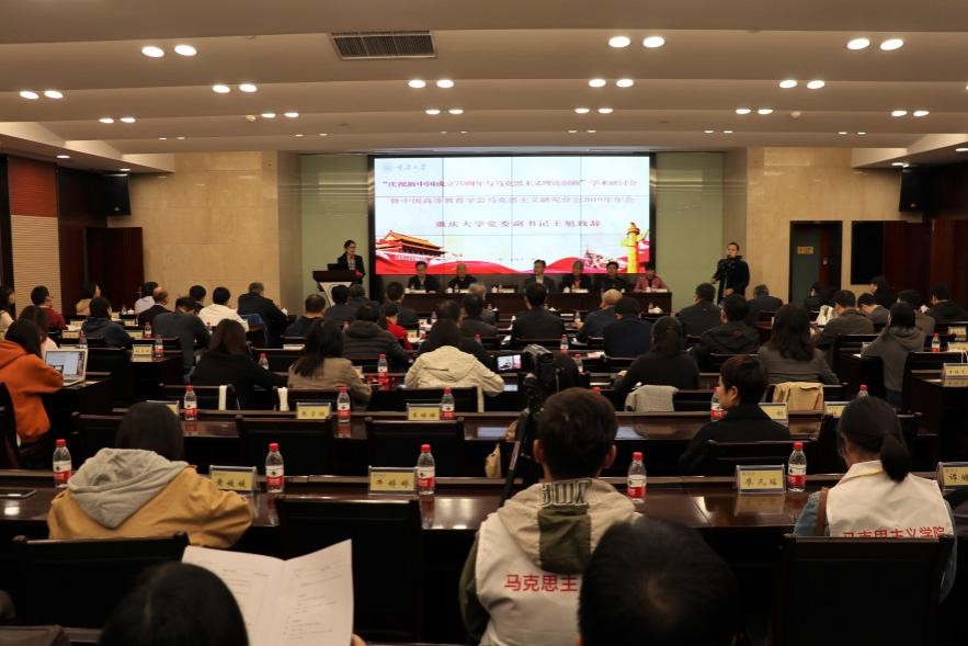 为深入学习贯彻党的十九大精神和习近平新时代中国特色社会主义思想,落实《关于深化新时代公司思想政治理论课改革创新的意见》,推进当代中国马克思主义理论创新的成果研究,“庆祝新中国成立70周年与马克思主义理论创新”学术研讨会暨中国高等教育学会马克思主义研究分会2019年年会于2019年11月2日在hy590海洋之神检测中心召开。本次会议由中国高等教育学会马克思主义研究分会、《红旗文稿》杂志社、hy590海洋之神检测中心共同举办、hy590海洋之神检测中心承办。来自清华大学、中国人民大学、武汉大学、中南大学、华南理工大学、兰州大学、国防大学、hy590海洋之神检测中心、北京科技大学、合肥工业大学、西南大学、西南政法大学、重庆邮电大学等高校的70余名马克思主义研究专家、学者参加会议。