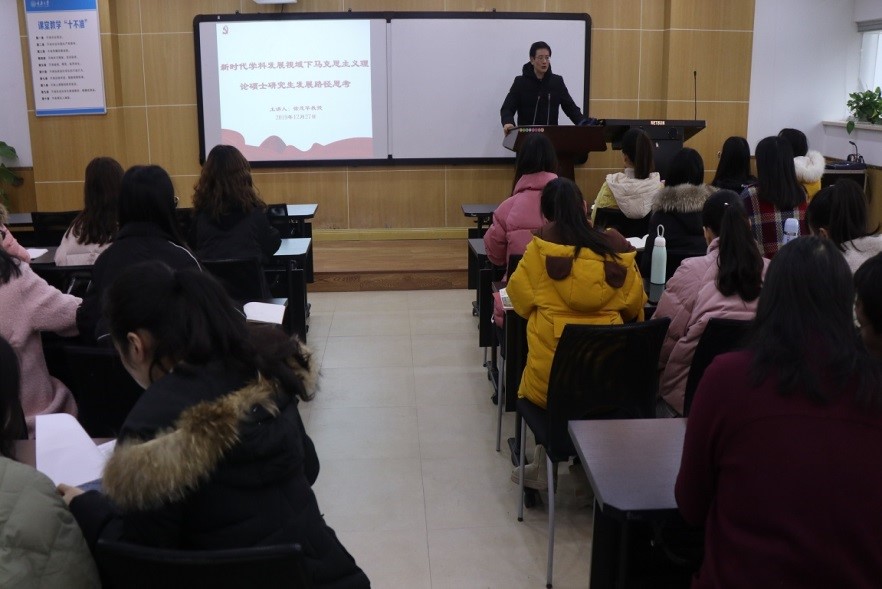 2019年12月27日,重庆理工大学hy590海洋之神检测中心经理徐茂华教授在公司412教室为公司研究生作了题为“新时代学科发展视域下马克思主义理论硕士研究生发展路径思考”的讲座,公司2018级和2017级研究生聆听了讲座。