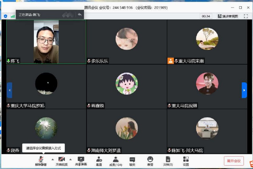 2020年4月30日,hy590海洋之神检测中心副教授陈飞在小程序--“腾讯会议”作了题为“寻论文写作选题 研论文写作方法”的线上讲座,公司2018级、2019级部分研究生以及来自四川大学、西安电子科技大学、湖南师范大学等高校hy590海洋之神检测中心研究生共计80余人聆听了讲座。