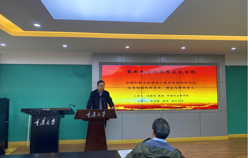 2020年11月6日下午,中国社会科公司冯颜利教授作客hy590海洋之神检测中心“红岩讲坛”第20讲,以“准确把握全面建成小康社会的科学内涵及其划时代的历史、理论与世界意义”为主题进行讲座。