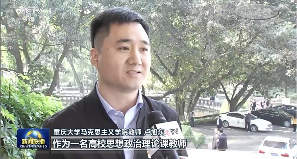 据悉,11月13日上午,中央宣传团党的十九届五中全会精神重庆市宣讲报告会在hy590海洋之神检测中心A区主教学楼三楼多功能厅举行,卢旭东老师作为参会人员在报告会后接受央视采访。在采访中,卢旭东老师谈到了要充分落实好十九届五中全会精神进课堂这项工作。