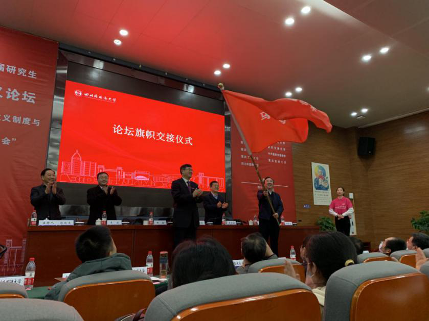 在本次论坛中,参会研究生分别参加“马克思主义基本原理”“中国特色社会主义制度与全面建成小康社会”“马克思主义中国化研究”“思想政治教育”四个分论坛进行交流讨论,碰撞思想火花。其中获得一等奖的邢瑞同学在分论坛中作主题发言并代表“马克思主义中国化研究”小组在闭幕式上做总结发言。