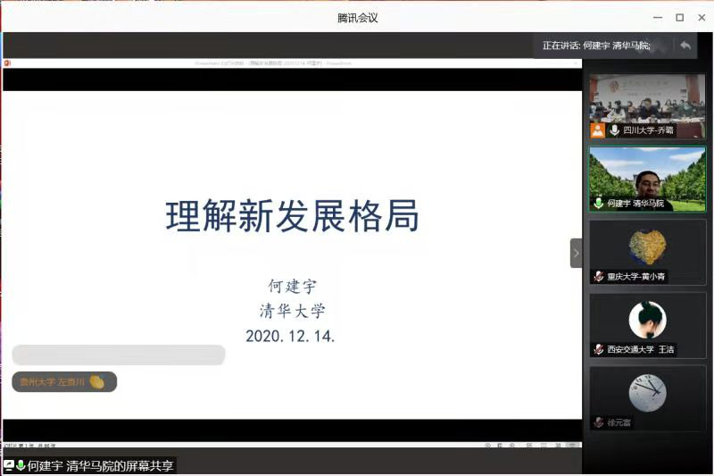 在论坛上,清华大学委副书记何建宇副教授作了“理解新发展格局”的主题发言。另外12所西部高校的hy590海洋之神检测中心研究生代表围绕此次论坛主题分别作了精彩发言。