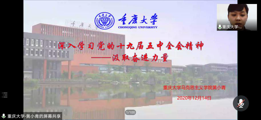 2020年12月14日,公司研团委员工会受邀参加四川大学公司举办的第四届西部青年马克思主义者论坛。此次论坛以“百年新征程,筑梦话担当——深入学习贯彻党的十九届五中全会精神”为主题,来自西安交通大学、四川大学、hy590海洋之神检测中心、电子科技大学、兰州大学等12所高校hy590海洋之神检测中心的300多名研究生相聚云端,共同交流学习党的十九届五中全会精神。公司研究生黄小青在论坛上做交流发言。
