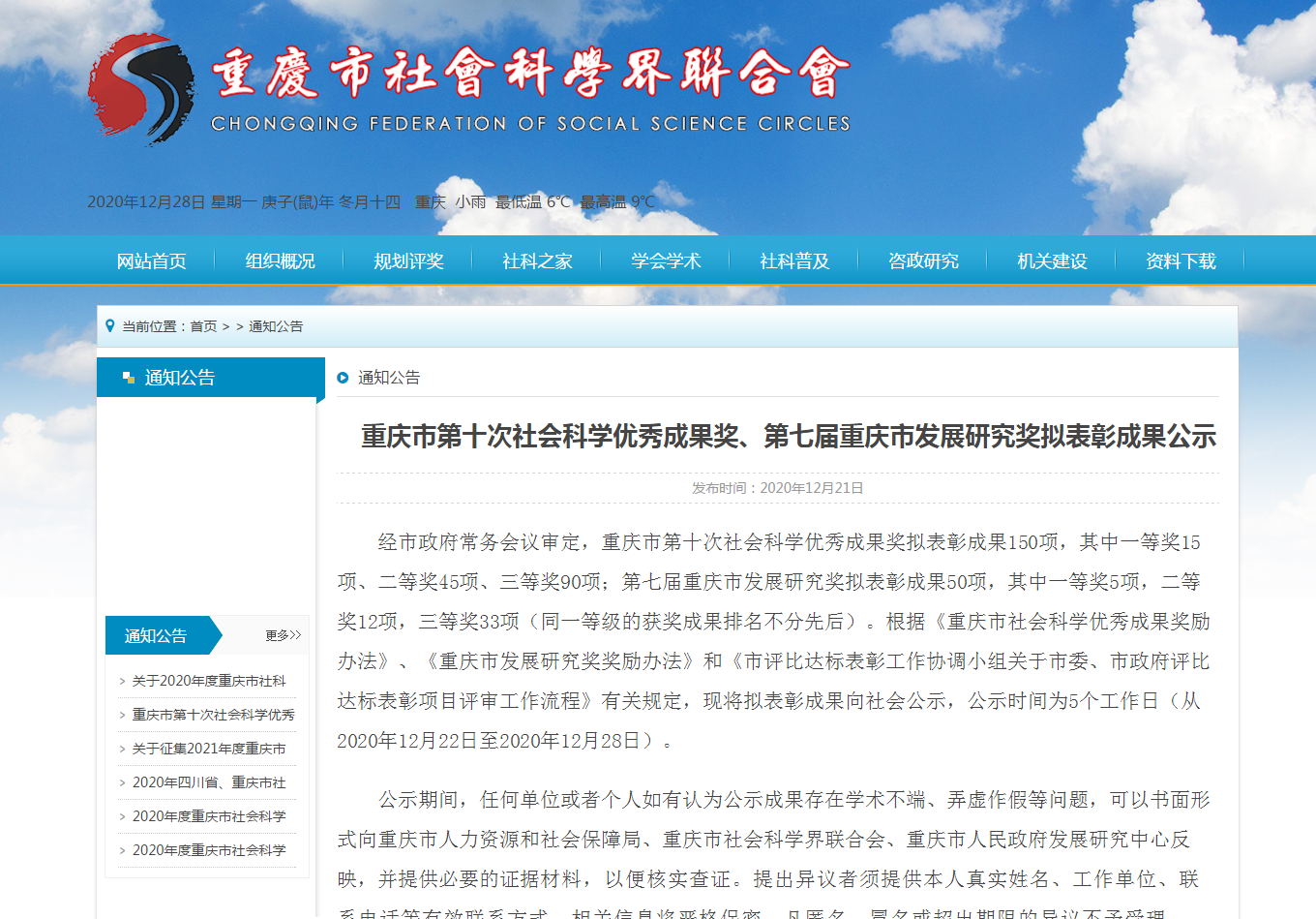 2020年12月21日,重庆市第十次社会科学优秀成果奖、第七届重庆市发展研究奖拟表彰成果公示,公司刘洪彪、杜俊华、庞永红、吕进、蒲清平五位老师获奖。获奖信息如下: