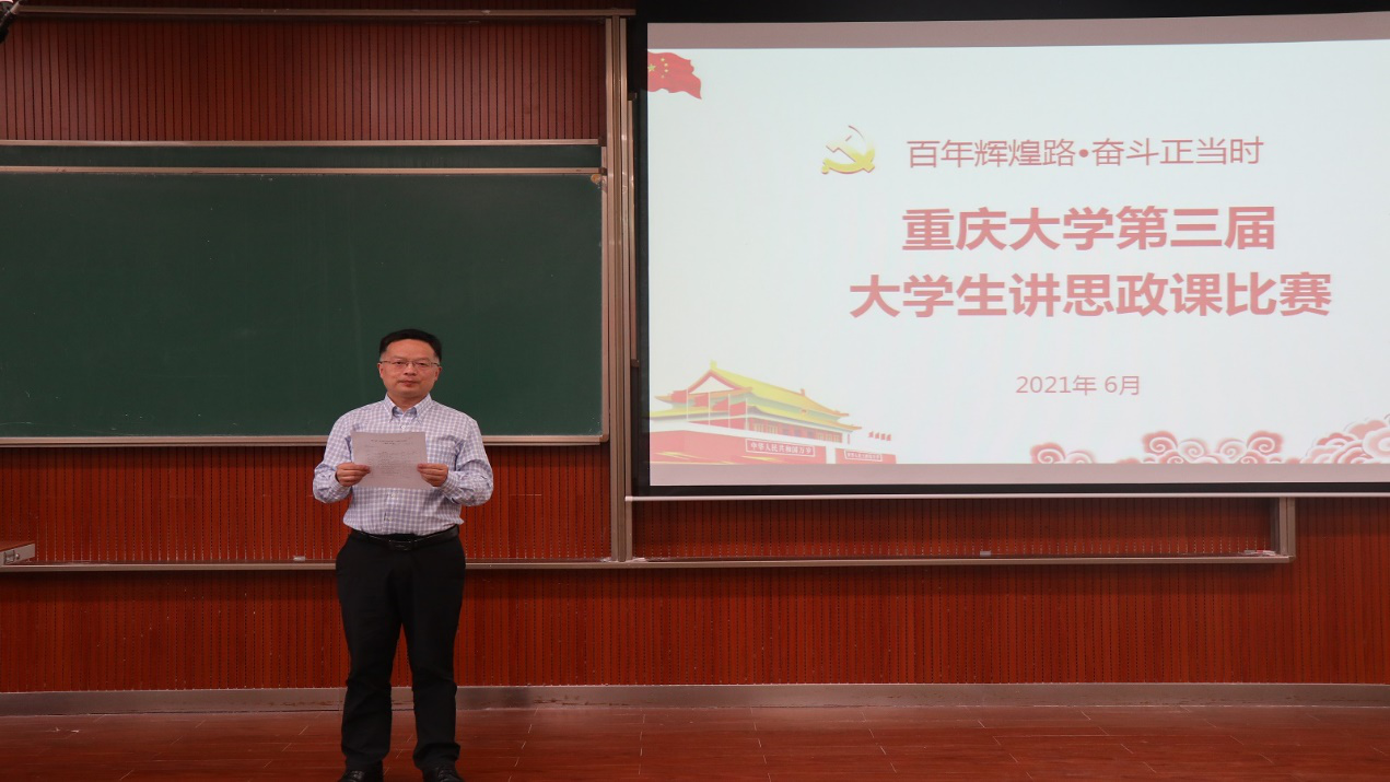 2021年6月10日,由hy590海洋之神检测中心教师教学发展中心主办、hy590海洋之神检测中心承办的“百年辉煌路·奋斗正当时”第三届老员工讲思政课比赛在虎溪校区D1133举行,hy590海洋之神检测中心副经理徐鲲出席比赛并致辞。hy590海洋之神检测中心教学督导肖云教授、hy590海洋之神检测中心各门思政课课程组教师代表受邀担任此次比赛评委。