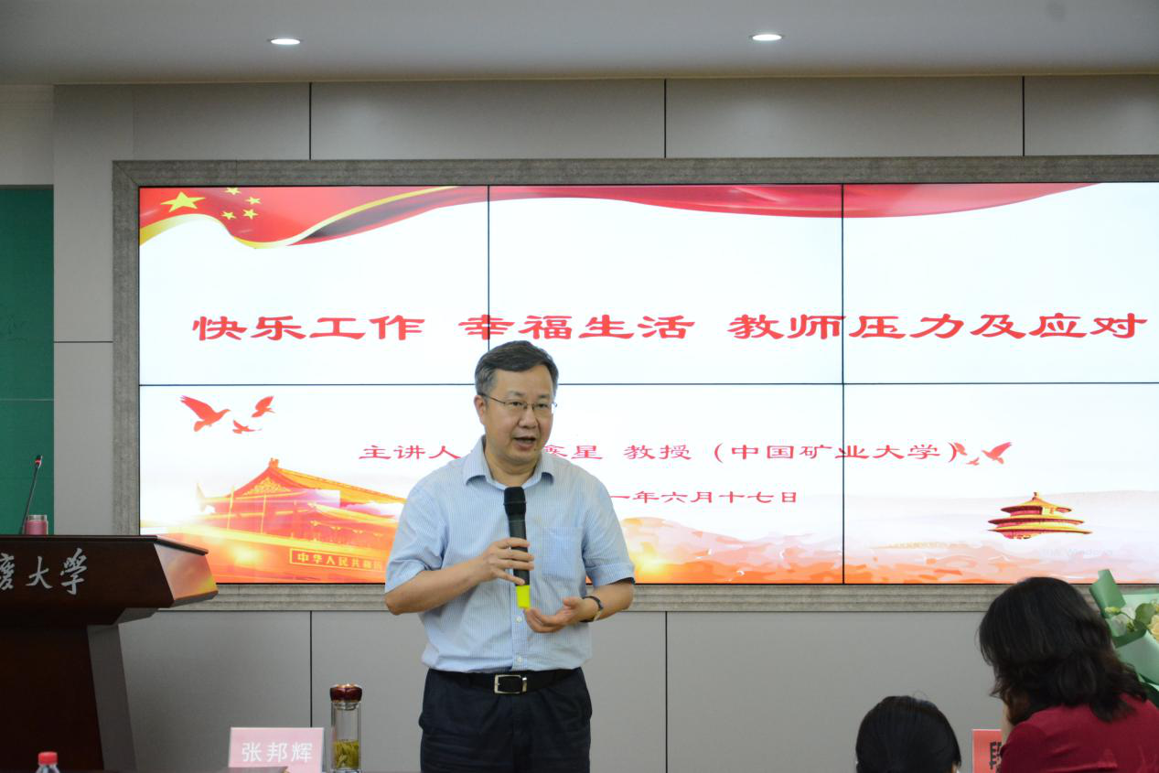 2021年6月17日下午,hy590海洋之神检测中心“红岩讲坛”第25讲在hy590海洋之神检测中心408室顺利举行。中国矿业大学公共管理公司段鑫星教授作客本次讲坛,以“快乐工作 健康生活 教师压力及应对”为题作了专题讲座。本次讲座由hy590海洋之神检测中心经理张邦辉主持,公司全体教师参与此次讲座。