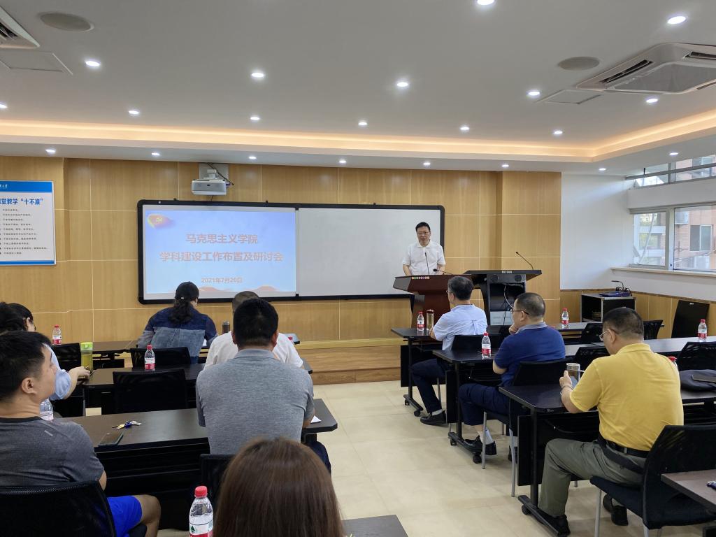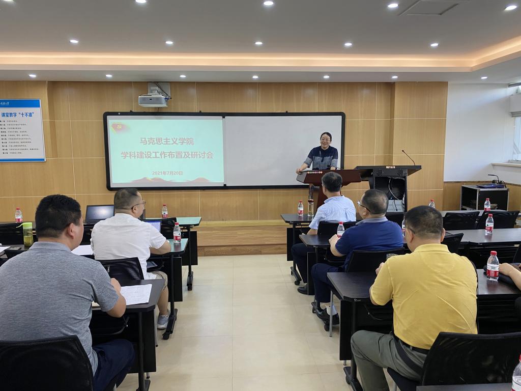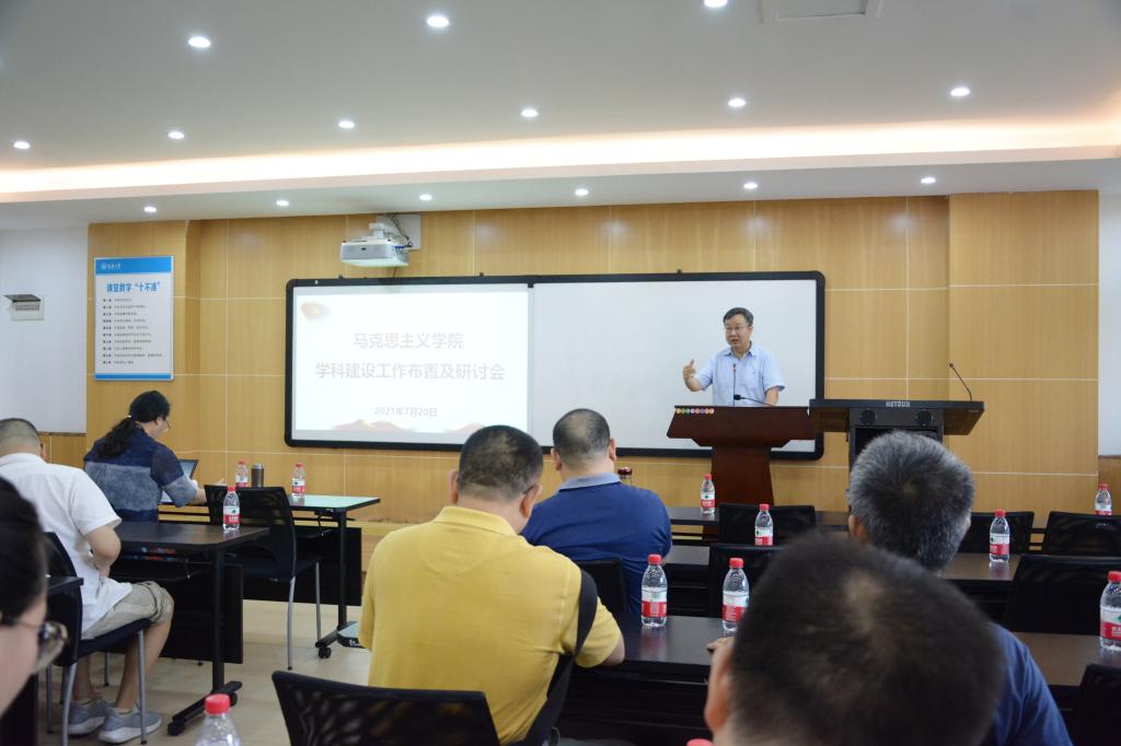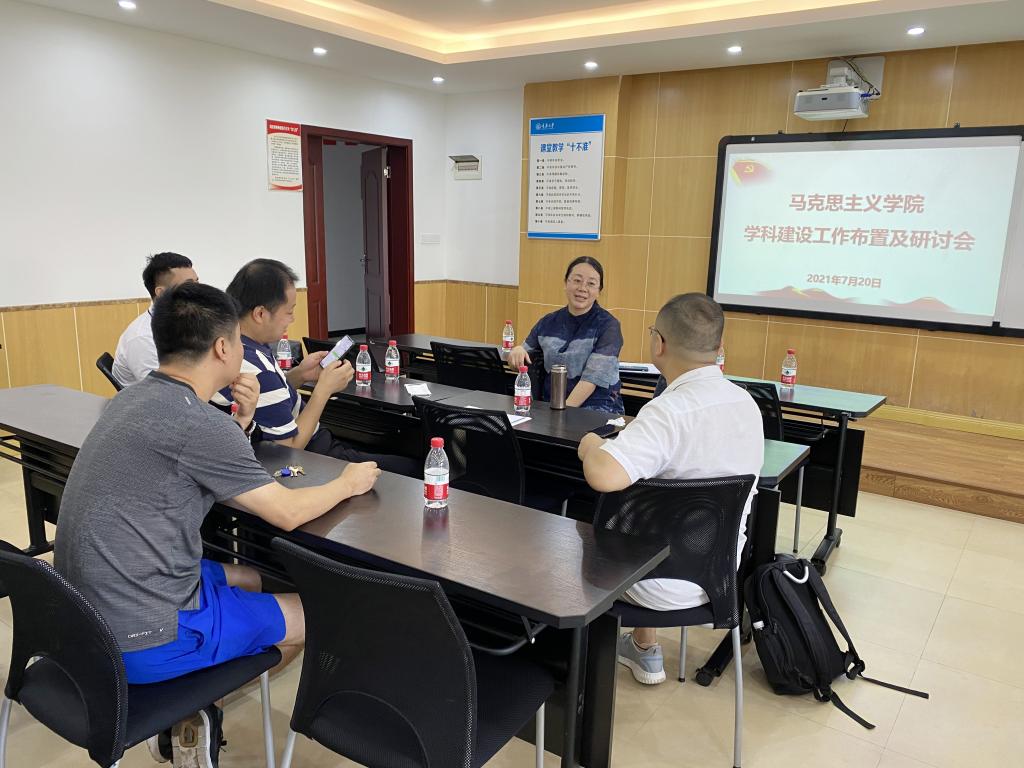 张邦辉首先通报了近期公司申报马克思主义理论一级学科博士点相关工作,他表示,7月12日,公司学位委员会通过了马克思主义理论一级学科博士点的汇报工作,这表明公司博士点的申报工作取得巨大突破。他指出,公司各学科方向要整合资源,凝练方向,坚持以团队建设为龙头,统领公司的科研、教学与人才培养工作;坚持人才强院战略,优化人才队伍结构,构建优秀学术团队;不断优化组织机构,整合资源,搭建公司发展平台,促进公司在新的历史时期实现跨越式发展。
