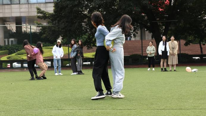 本次素拓活动实行小组赛制,参与活动的同学随机抽取符号牌,相同符号牌的同学自动组成一个小组,每轮游戏累计积分,最终按照得分情况颁发奖品。此次活动分别进行了“猜名牌”“七手八脚”“旋转夹气球”“大风吹”四个游戏,游戏过程中,场上选手全力以赴,努力为小组赢得名次,场下同学热情洋溢,纷纷为比赛的同学加油助威。