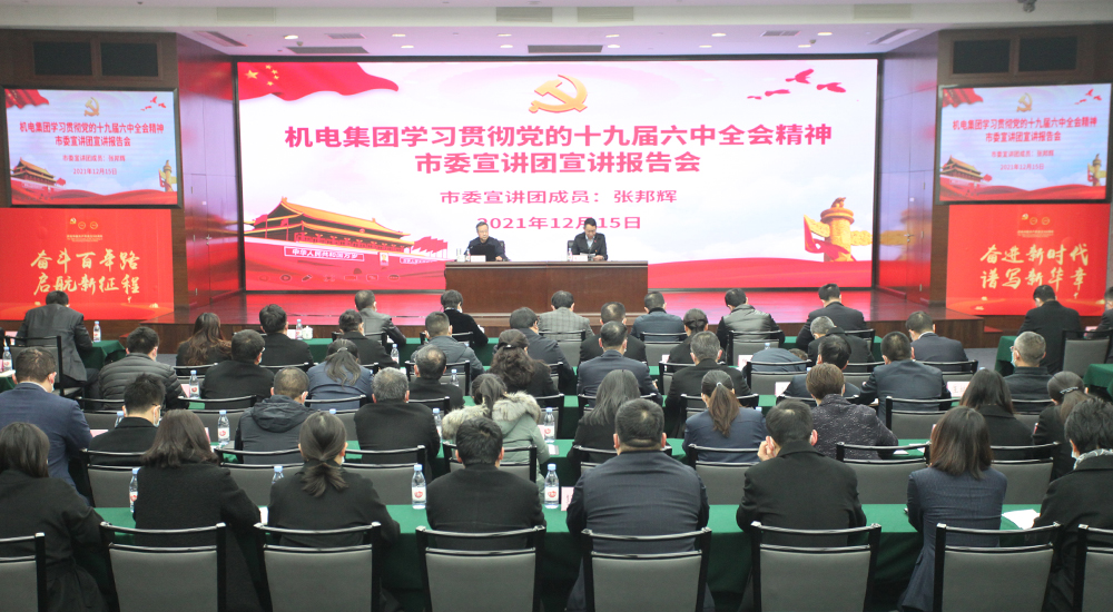 12月15日,重庆机电集团举行学习贯彻党的十九届六中全会精神市委宣讲团宣讲报告会,张邦辉作党的十九届六中全会精神宣讲报告,报告会设主、分会场,机电集团及所属企业主要领导,集团党史学习教育领导小组办公室成员及集团总部全体员工等120余人在主会场参会,集团所属其他企业领导班子成员、中层管理人员及党员职工代表等1300余人在分会场通过视频直播方式收看报告会。张邦辉在宣讲报告中对全会精神作了全面深入的宣讲解读。机电集团党委委员、纪委书记、市监委驻机电集团监察专员张义德在总结中表示:“张邦辉教授的宣讲,系统全面、深入透彻,具有很强的思想性、针对性、指导性,让集团广大党员干部更加准确的领会和全面把握党的十九届六中全会的精神实质。”