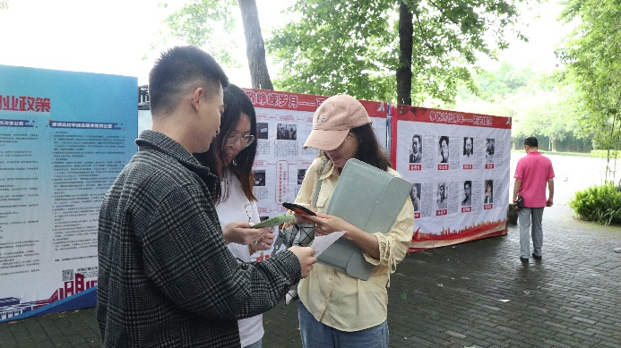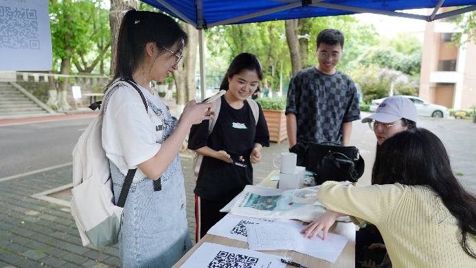 知识竞赛与主题展览同时展开,竞赛内容围绕百年团史、“七一”重要讲话精神、党的十九届六中全会精神等五大主题,既注重史实又结合时政,吸引了美视电影公司、通信公司、机械公司等公司的上百名同学参加,在工作人员的引导和介绍下,通过扫描活动二维码参与答题,并根据答题分数赢得了丰富的奖品。在答题过程中,许多同学不禁感叹“在近代一百年的历程中,我国发生了如此翻天覆地的变化,生于和平年代的我更应该为实现中华民族伟大复兴贡献自己的一份力量。”