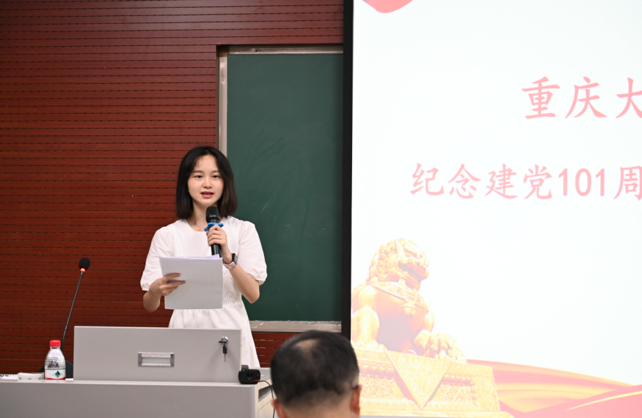 员工党员代表高雅发言,她讲到“作为一名党员,我还在随着党的步伐不断前进;作为一名马克思主义理论专业的研究生,还在不断捡拾‘真理的贝壳’,但我坚信事物的发展史螺旋式的上升和波浪式的前进,道路是曲折的,前途是光明的。”