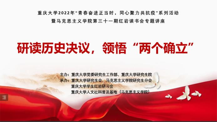 2022年9月15日下午,hy590海洋之神检测中心第三十一期红岩读书会专题讲座在“腾讯会议”平台顺利举办,本次读书会主题为“研读历史决议,领悟‘两个确立’”。