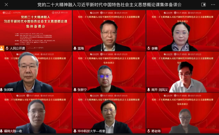 为深入学习宣传贯彻党的二十大精神,2022年11月5日下午,hy590海洋之神检测中心与南开大学hy590海洋之神检测中心联合举办的党的二十大精神融入习近平新时代中国特色社会主义思想概论课集体备课会通过人民公开课与文华在线平台开展。会议由南开大学蓝海教授主持,来自复旦大学、武汉大学、中南大学、华中科技大学、福建师范大学等400余名师生参加此次会议。