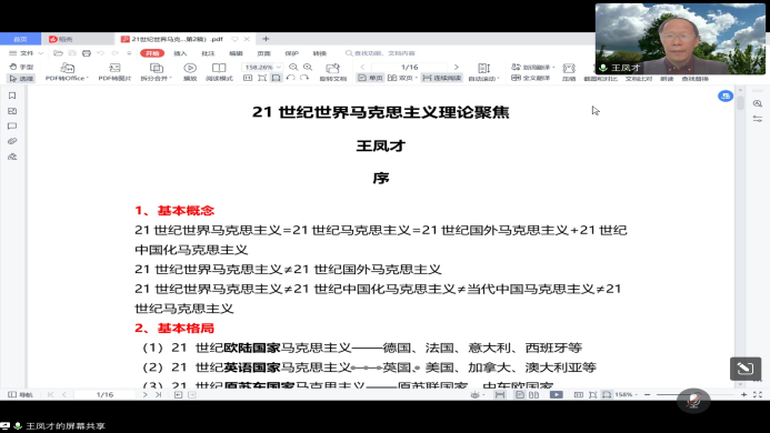 王凤才教授以“21世纪马克思主义理论聚焦”为主题,从辨析21世纪世界马克思主义的基本概念入题,分析了21世纪世界马克思主义的基本格局与基本框架,并由此引入此次讲座主体部分。